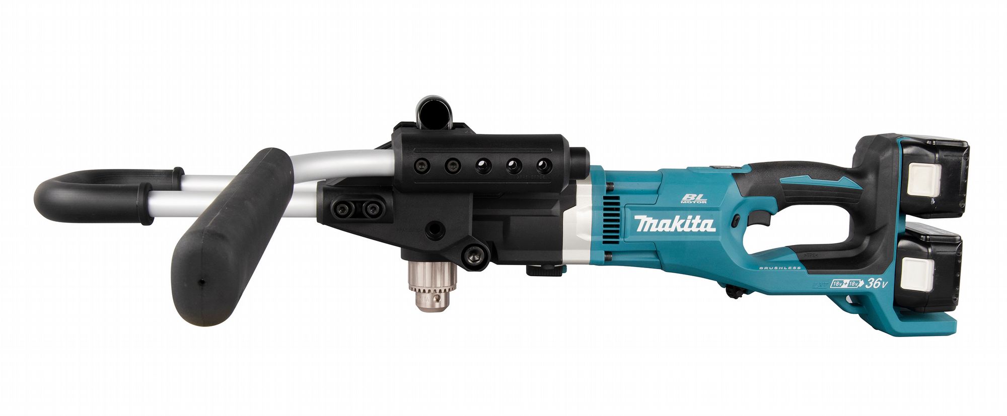 Der 2 x 18 V Akku-Erdbohrer DDG460 bringt ein Drehmoment bis 136 Nm auf und ist somit sehr vielfältig einsetzbar. Mit zwei Drehzahlbereichen sind zudem Bodenbearbeitungen in lockerem, sandigen, als auch in hartem, lehmigen Böden möglich. Der großzügige Seitengriff sorgt für einen stabilen und sicheren Halt. Die Antirutschkupplung vermindert die Gefahr eines sogenannten Karusselleffekts. Mit dem Rückwärtslauf kann ein blockierter Bohrer gelöst werden.