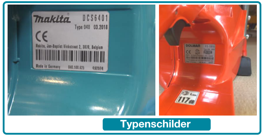 Auf den Typenschildern stehen die Hersteller Makita Jan-Baptist (bei älteren Modellen auch Makita Corporation) und Dolmar.